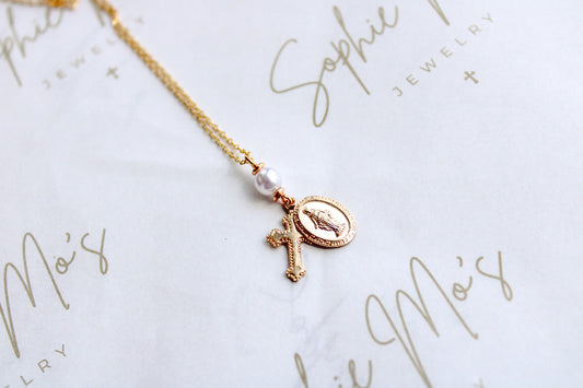 Religious Necklace with Pearl Connector